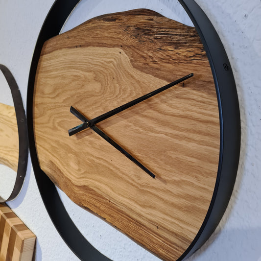 Wanduhr Rund | Eiche | Mittel 50 cm | Uhr aus Holz & Metall