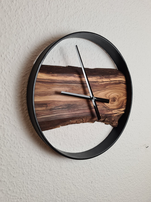 Wanduhr Rund 35cm | Eiche verwittert | Uhr aus Holz & Metall