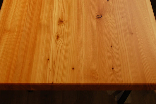 Tischplatte Lärche mit Baumkante und Gratleiste, gehobelt, geschliffen, endbehandelt