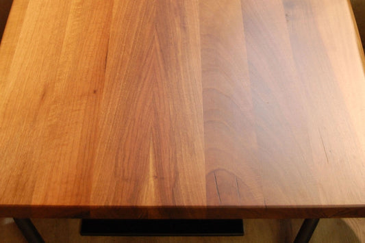 Tischplatte europ. Nussbaum mit Baumkante und Gratleiste, gehobelt, geschliffen und endbehandelt
