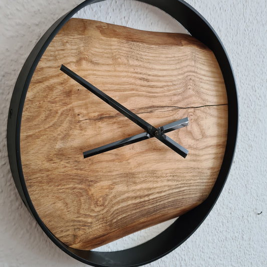 Wanduhr Eiche | Holz & Metall | Rund | Klein 35 cm