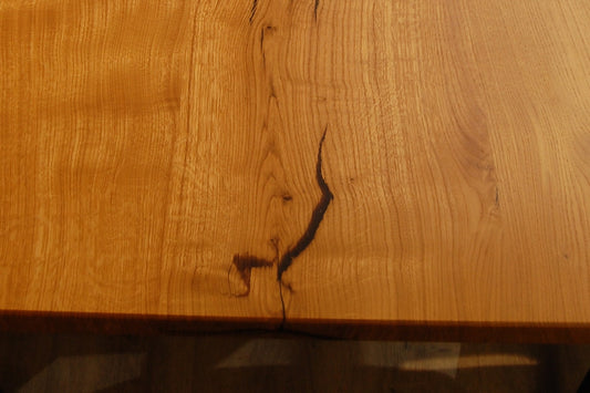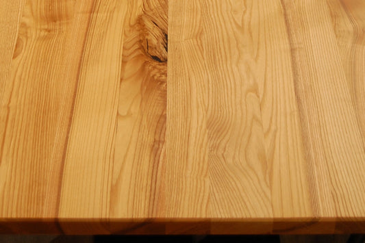 Tischplatte Esche Olivekern mit Baumkante und Gratleiste, gehobelt, geschliffen und endbehandelt