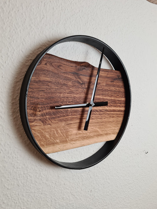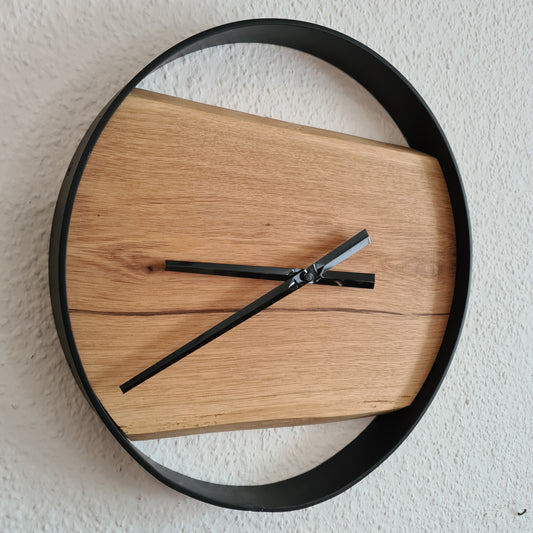 Auf NachfrageWanduhr Rund 35cm | Eiche massiv | Uhr aus Holz & Metall