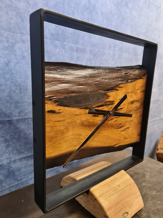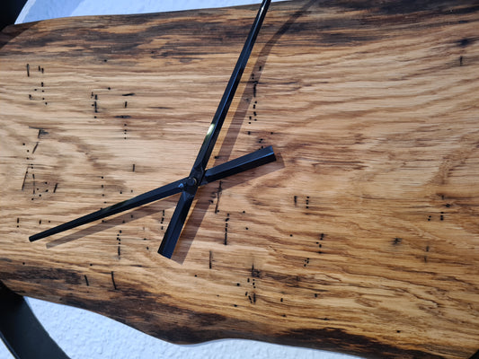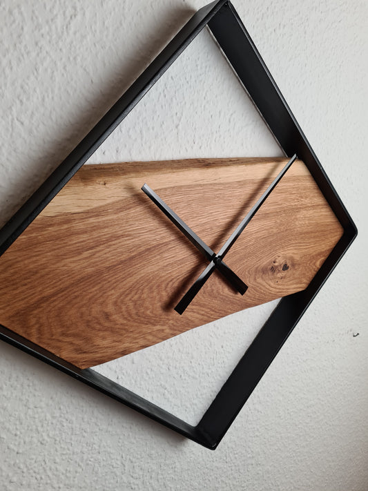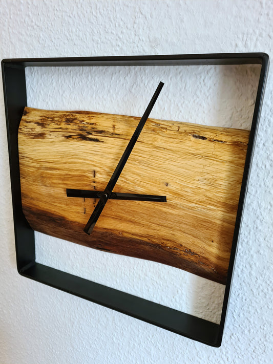 Wanduhr Eckig 35cm | Eiche massiv | Uhr aus Holz & Metall