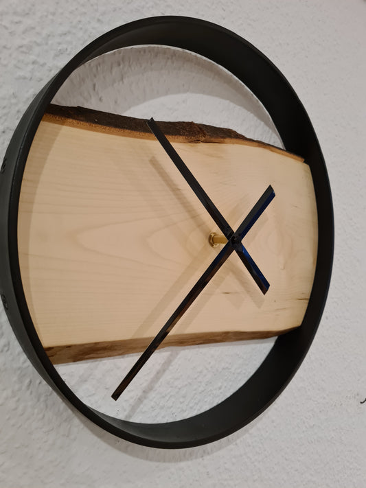 Wanduhr Rund 35cm | Esche massiv geölt | Uhr aus Holz und Metall