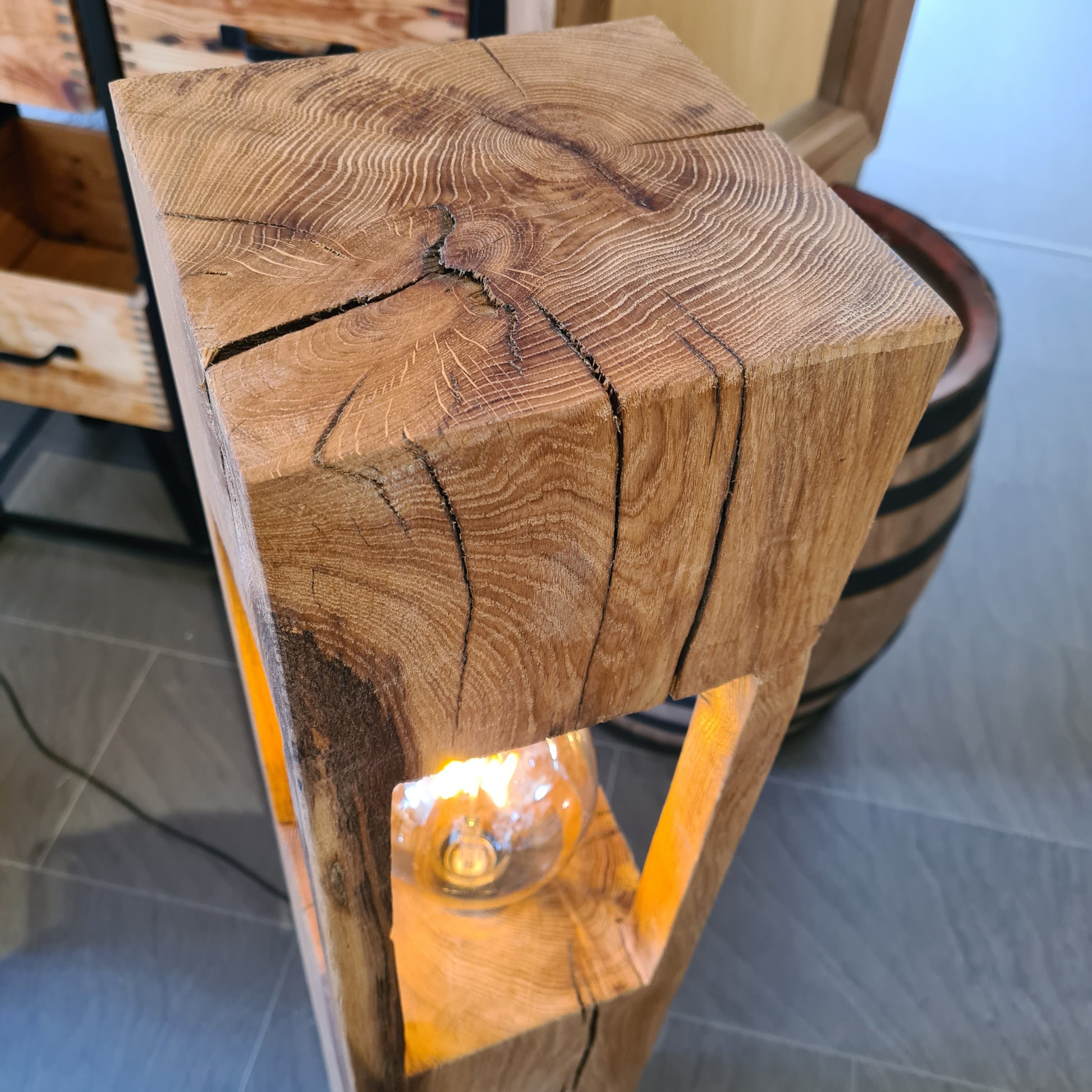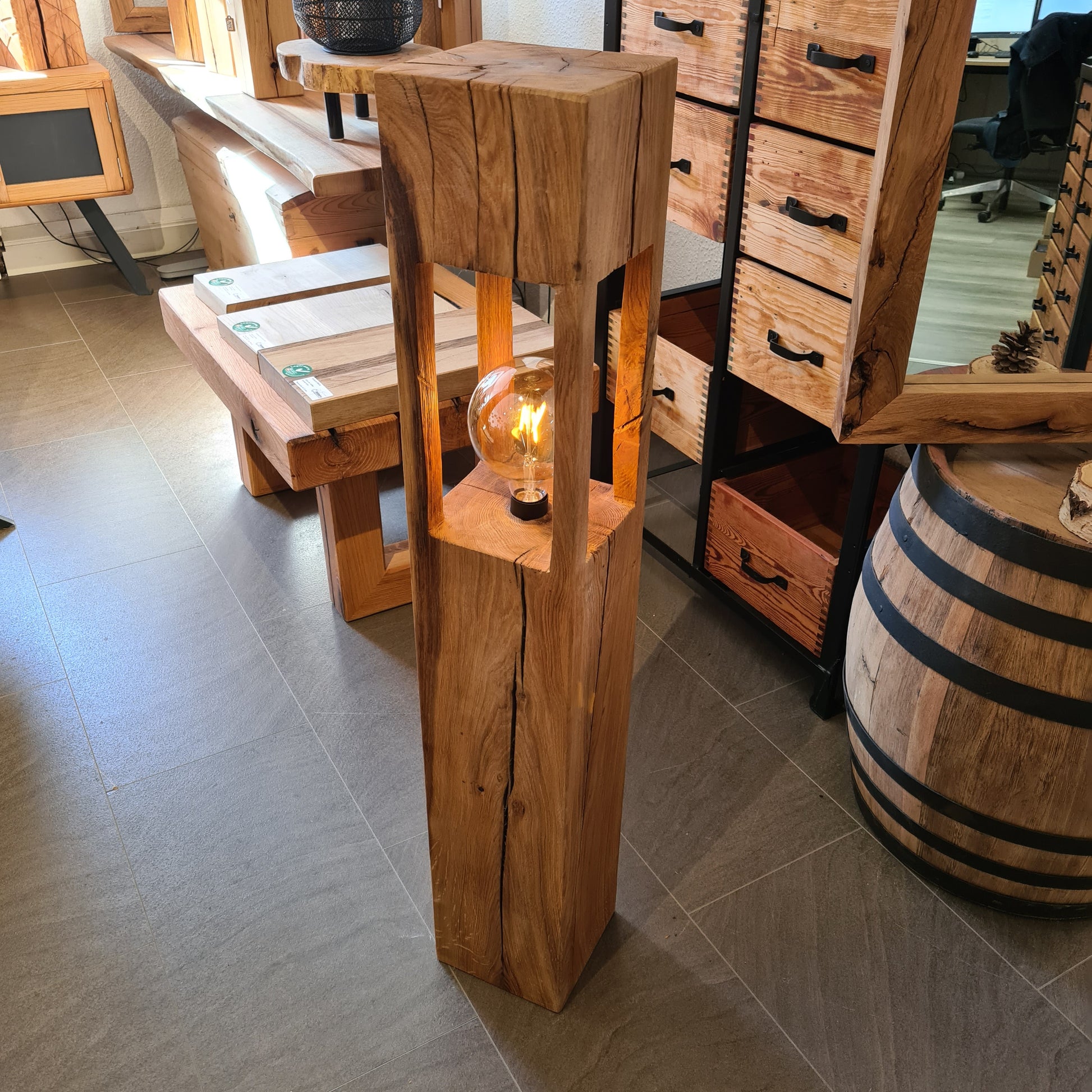 Tischlampen bzw. Stehlampen aus Eiche massiv.