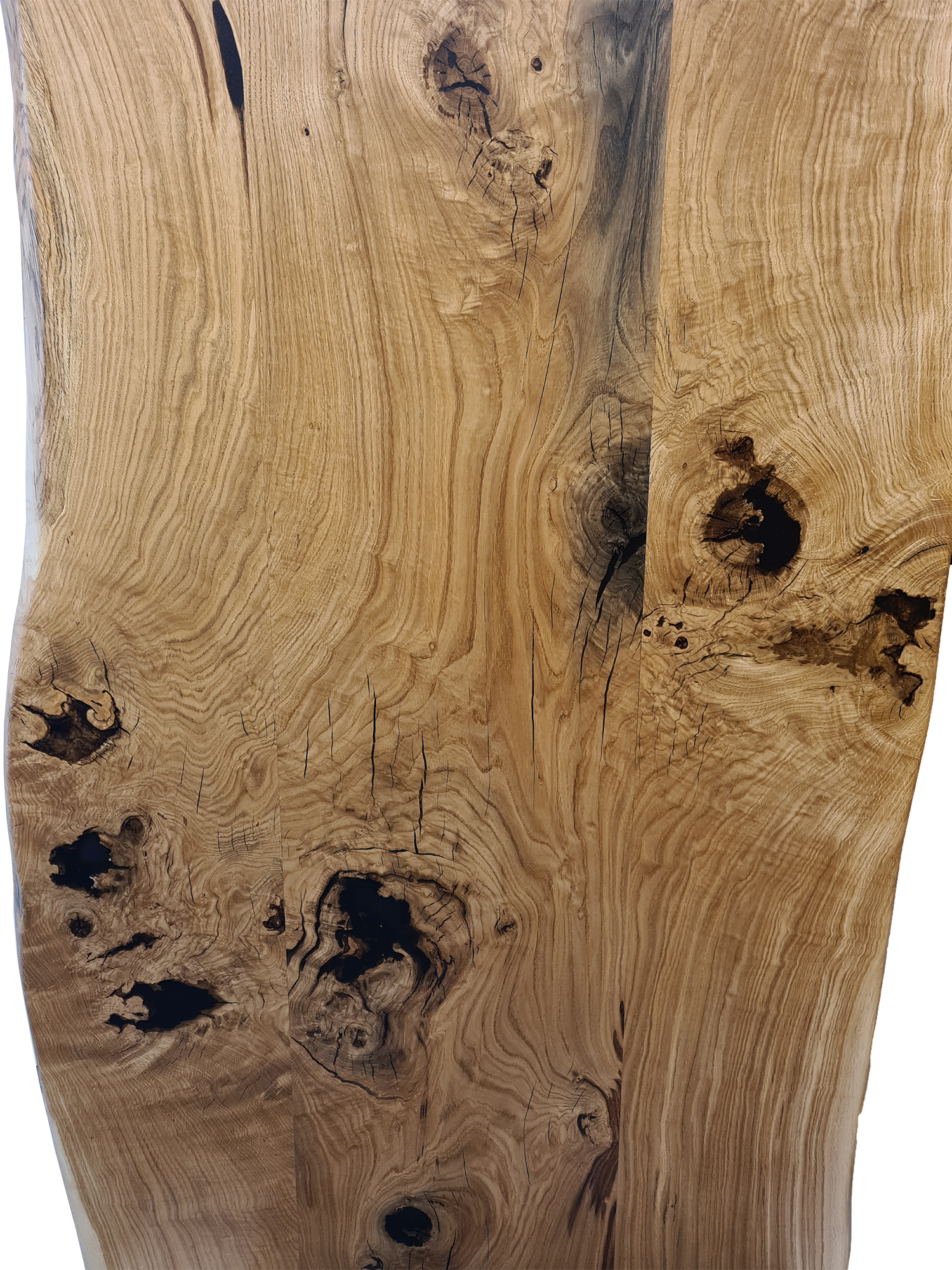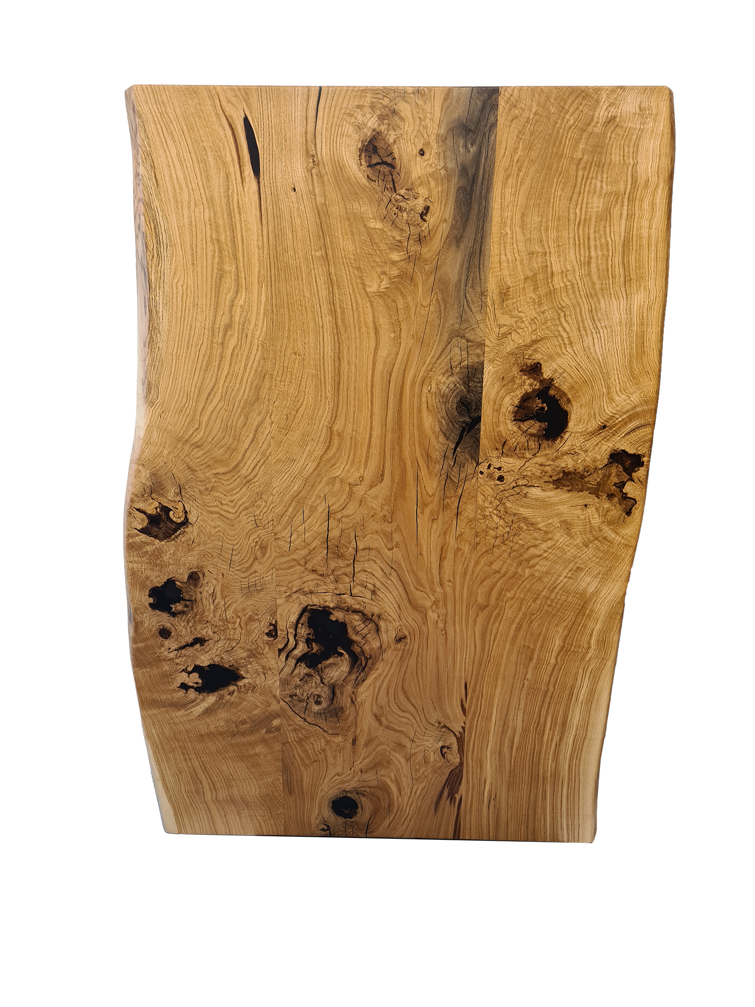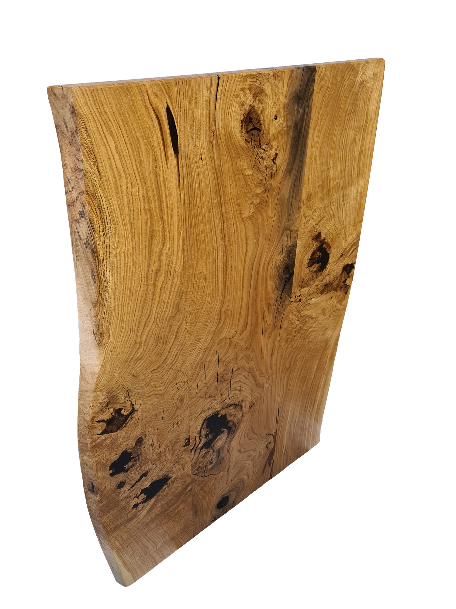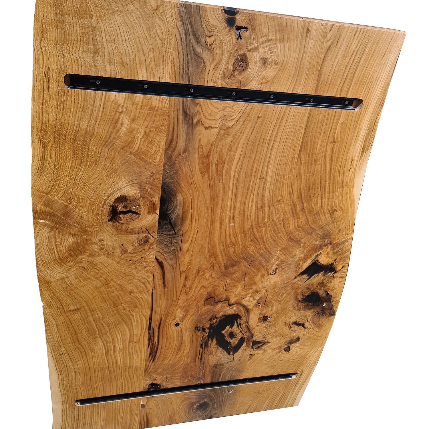 Unsere Leimholzplatte aus rustikaler Eiche mit Baumkanten besticht durch natürliche Maserung und charaktervolle Holzstruktur. Die sorgfältige Endbehandlung schützt die Oberfläche und betont die warme Ausstrahlung des Holzes.