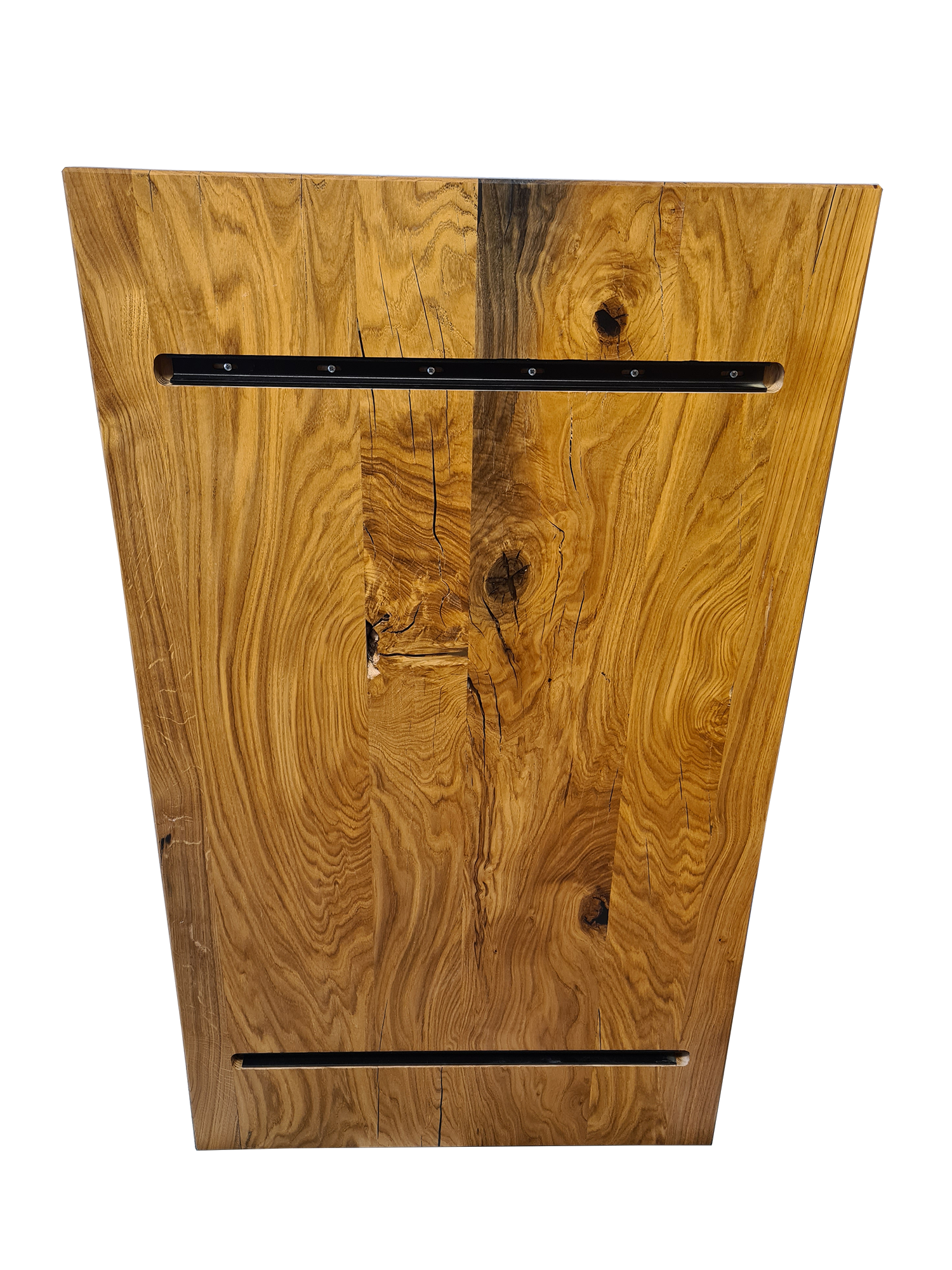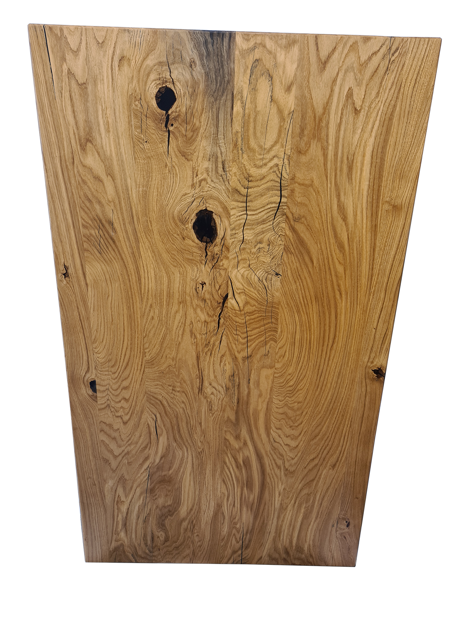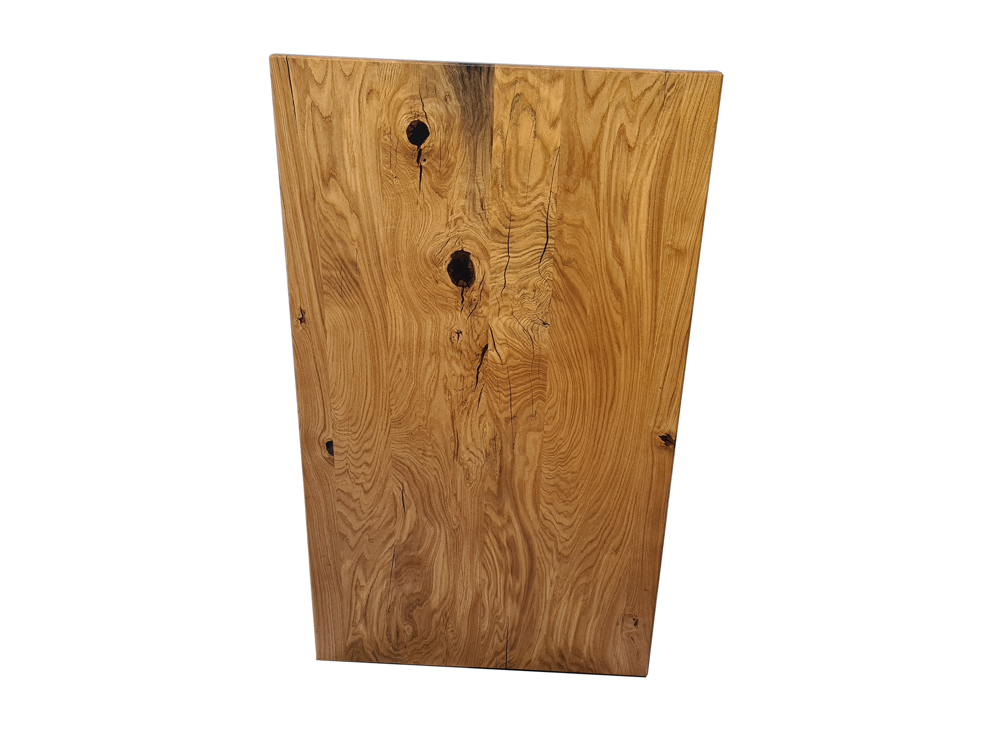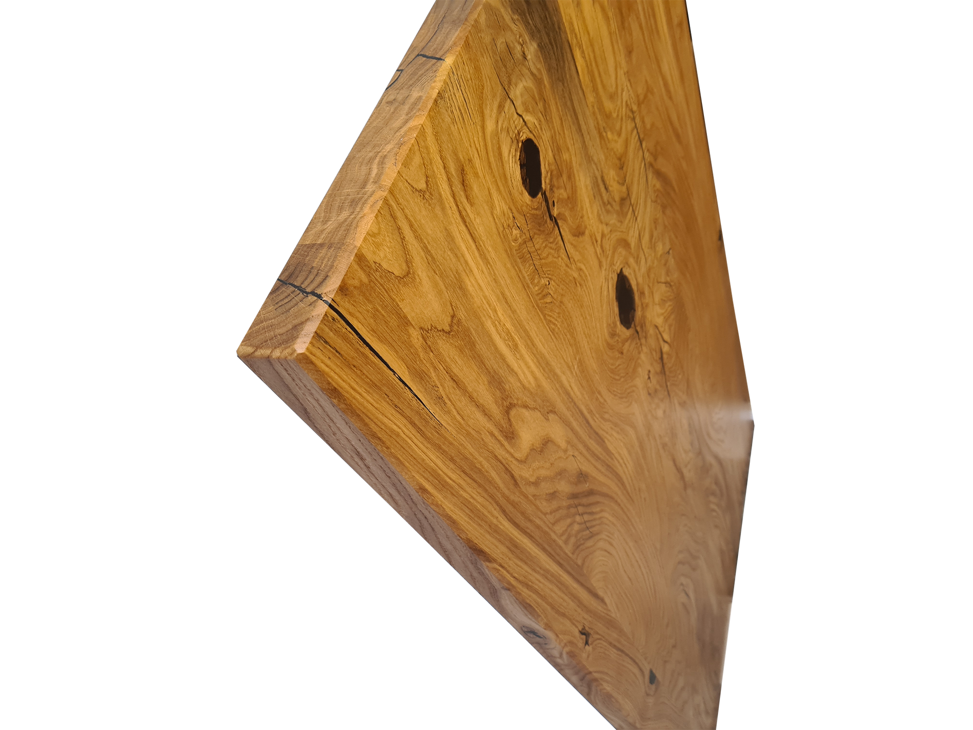 Unsere Leimholzplatte aus rustikaler Eiche mit gerader Kante besticht durch natürliche Maserung und charaktervolle Holzstruktur. Die sorgfältige Endbehandlung schützt die Oberfläche und betont die warme Ausstrahlung des Holzes.
